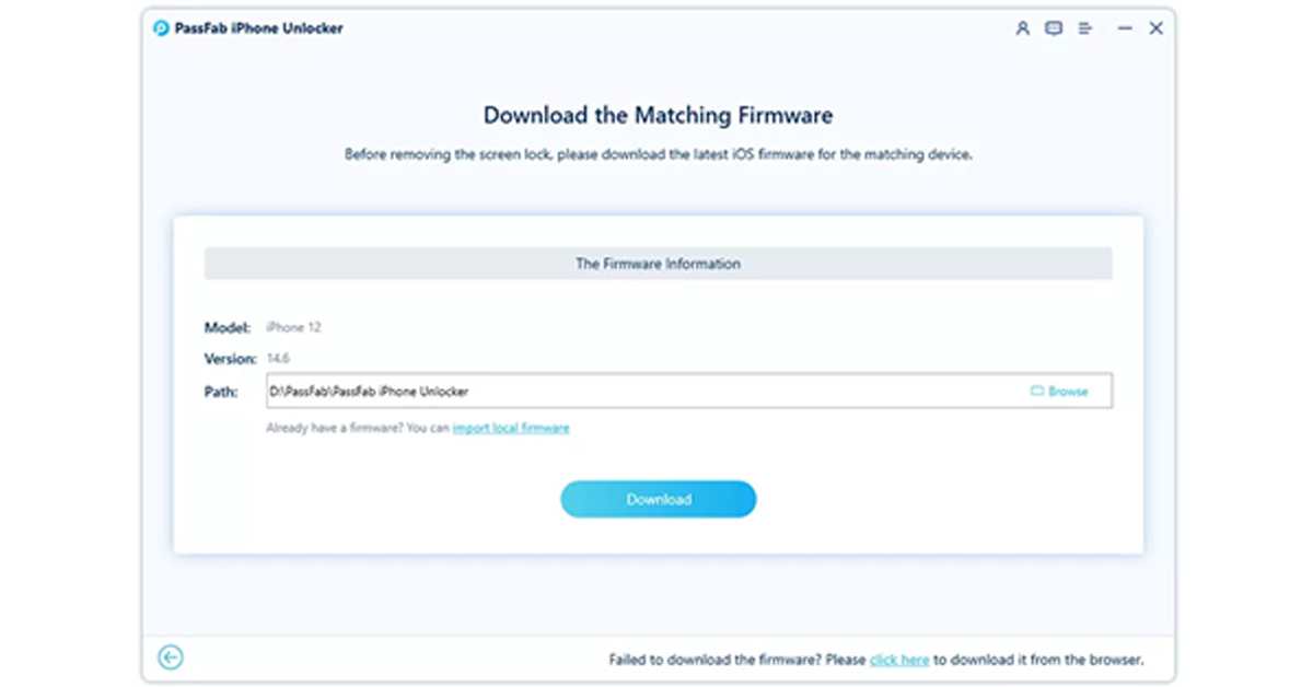 Når enheden er blevet opdaget og genkendt af programmet, skal du downloade den firmwarepakke, der er den mest kompatible med din enhed. Du behøver kun at klikke på knappen "Download" på programgrænsefladen for at gøre dette.Trin 4: