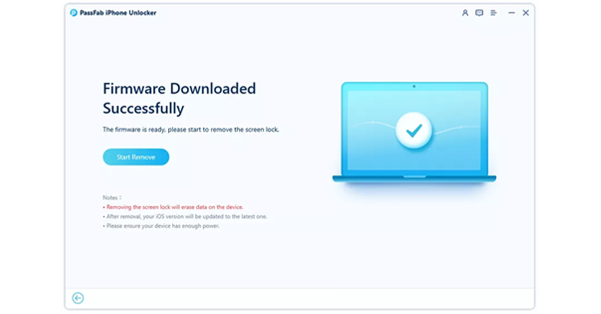 Det sidste trin er blot at klikke på knappen "Start Fjern" ved siden af programmet, efter at firmwarepakken er blevet downloadet. Når du har gjort det, starter proceduren for at låse din deaktiverede iPhone op. Så snart proceduren er afsluttet, vil du blive informeret om, at din iPhone er blevet låst op.