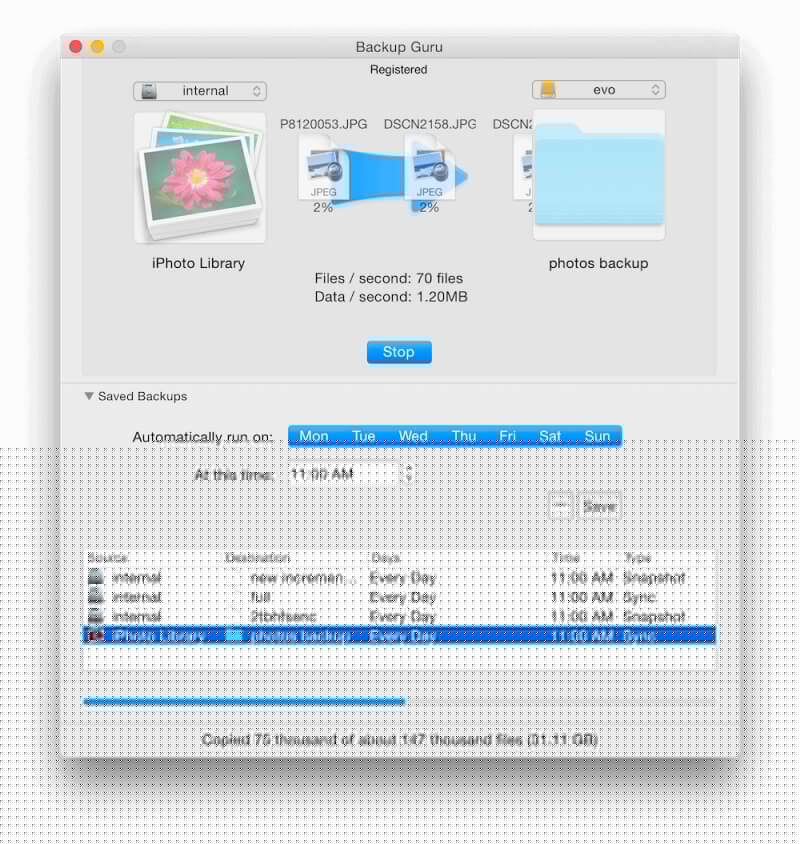 MacDaddy'sMac Backup Guruer en prisbillig app, der opretter en bootbar klon af din harddisk. Det tilbyder i alt tre typer backup: