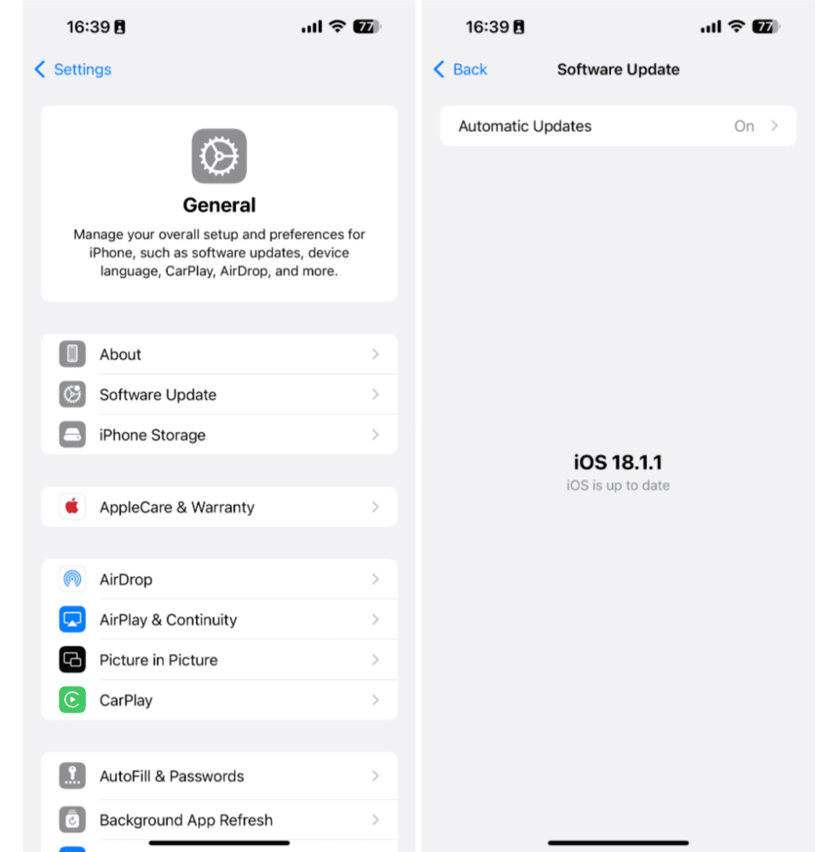 - Åbn Indstillinger > Generelt > Softwareopdatering.