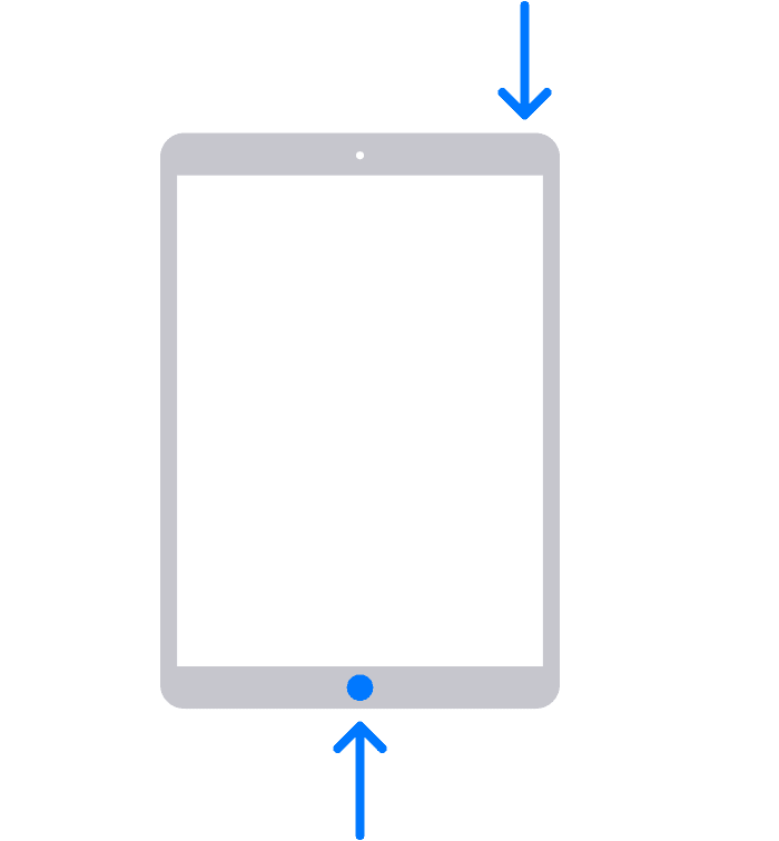 • iPads med Hjem-knap: Hold Hjem- og topknapperne nede, indtil du ser Apple-logoet.