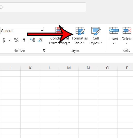 Trin 4: VælgFormater som tabelknappen i Styles-gruppen på båndet.