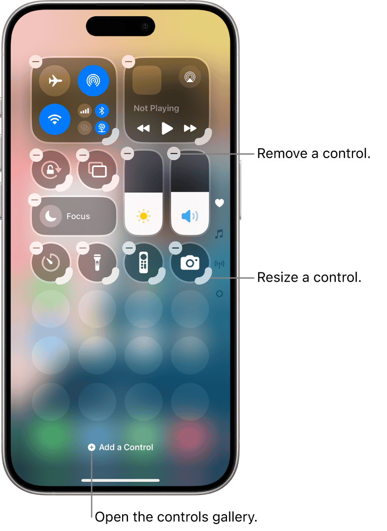 Stryg ned fra øverste højre hjørne af din skærm (eller op fra bunden på ældre iPhones) for at åbne Kontrolcenter. Her kan du hurtigt justere lysstyrke, lydstyrke, Wi-Fi og meget mere. Du kan tilpasse, hvilke kontroller der vises i Kontrolcenter i Indstillinger > Kontrolcenter.