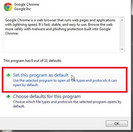 Så læs nedenfor for at lære de nødvendige trin for at gøre Chrome til standard Windows 7-webbrowser.