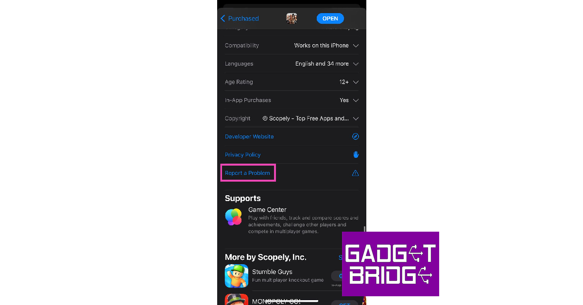 Trin 4:Rul ned og vælg Rapporter et problem.