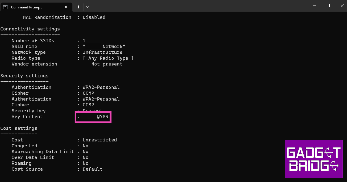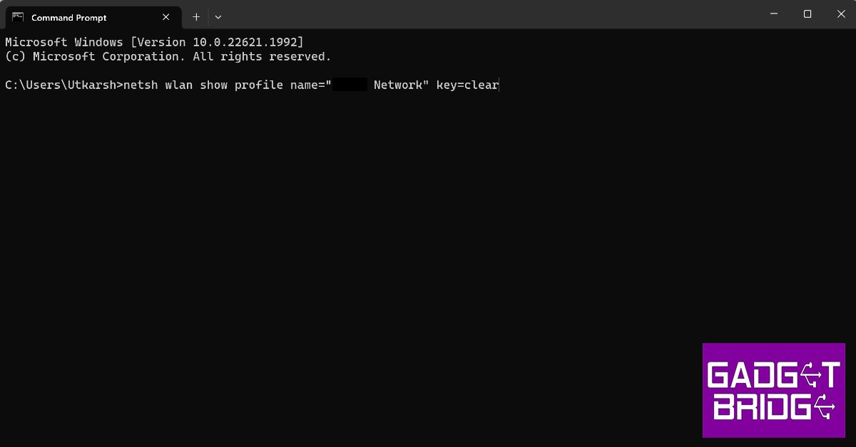 netsh wlan vis profilnavn=”indtast wifi-netværkets navn her” key=clear