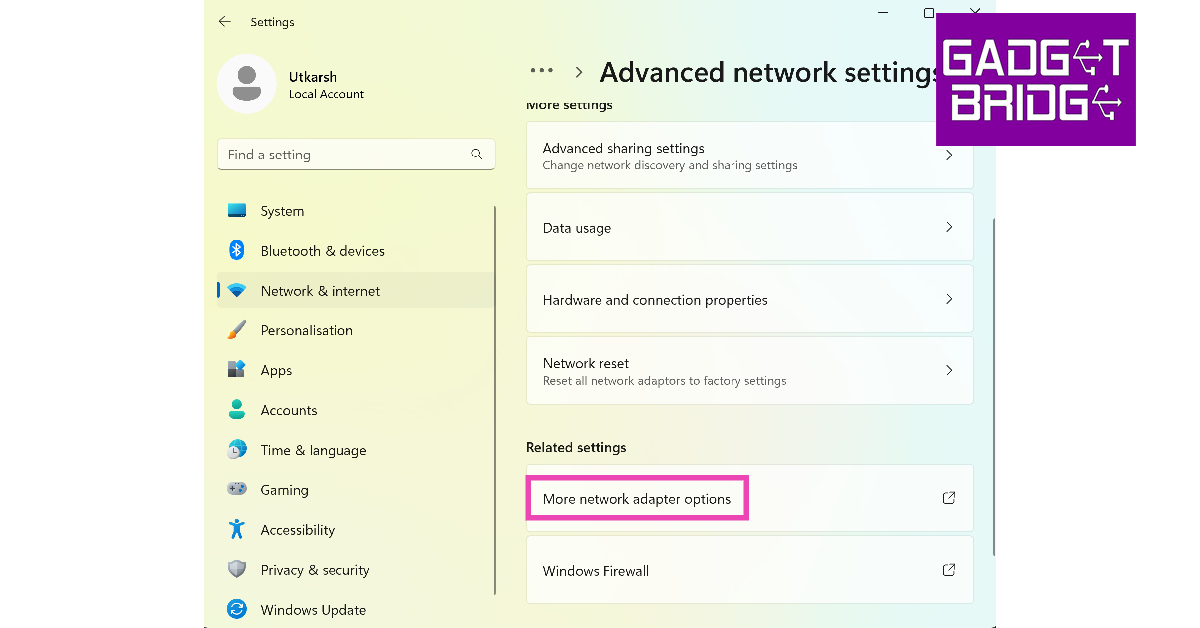 Trin 3:VælgeFlere muligheder for netværksadaptere.