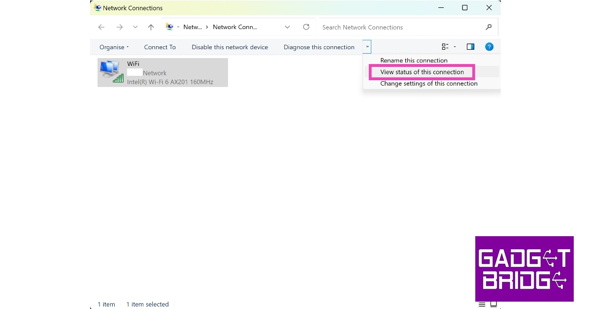 Trin 6:VælgSe status for denne forbindelsevalgmulighed.