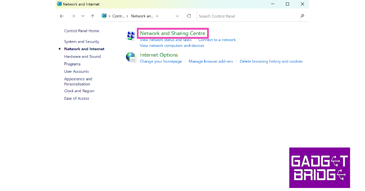 Trin 1:Gå til kontrolpanelet og vælgNetværk og internet.