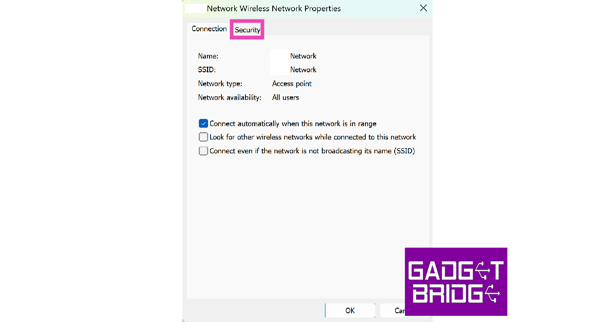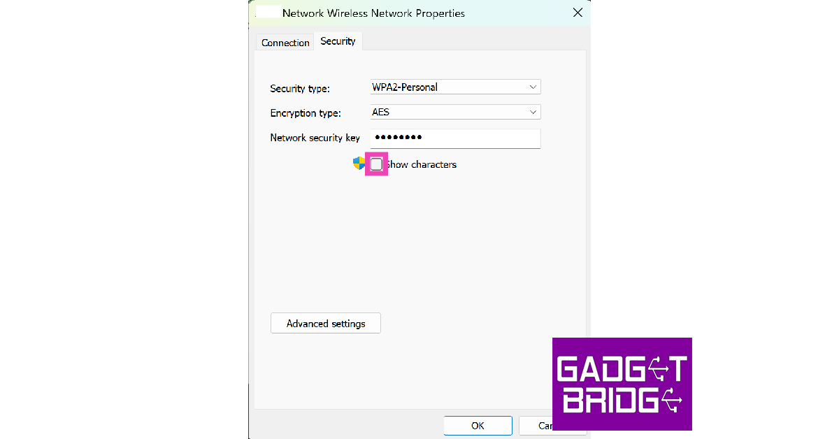 Trin 6:Klik på afkrydsningsfeltet forVis karaktererunderNetværkssikkerhedsnøglefelt.