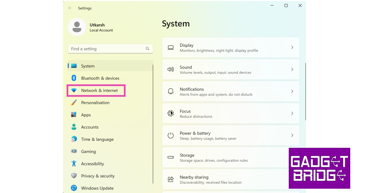 Trin 1:Gå tilIndstillingerog vælgNetværk og internet.