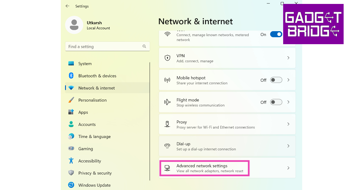 Trin 2:Klik påAvancerede netværksindstillinger.