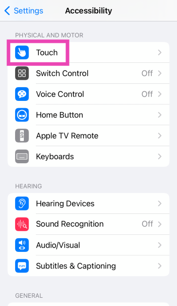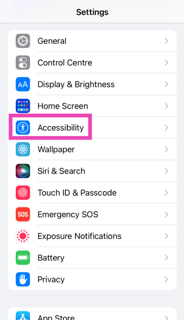 Trin 1:Gå tilIndstillingerog vælgTilgængelighed.