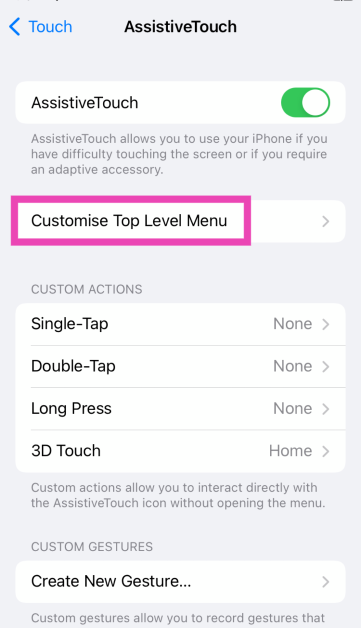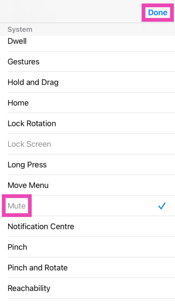 Du kan tilføje mute-indstillingen i Assistive Touch-menuen, hvis din iPhones handlingstast/advarselskontakt er ødelagt. Gå tilIndstillinger>Tilgængelighed>Berøring>Hjælpende berøring>Tilpasset topniveaumenu, vælg en handling og skift den med Lydløs.