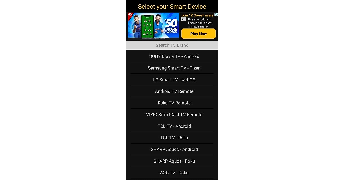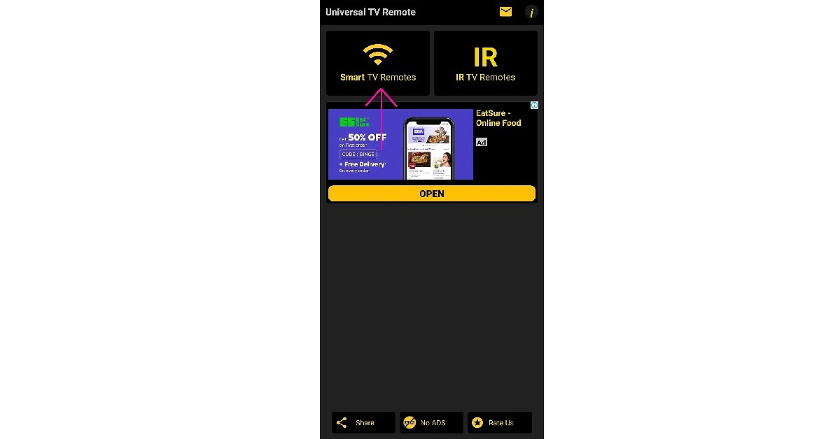 Trin 2:Tryk påSmart TV fjernbetjeninger. Sørg for, at din telefon og dit tv er forbundet til det samme WiFi-netværk.