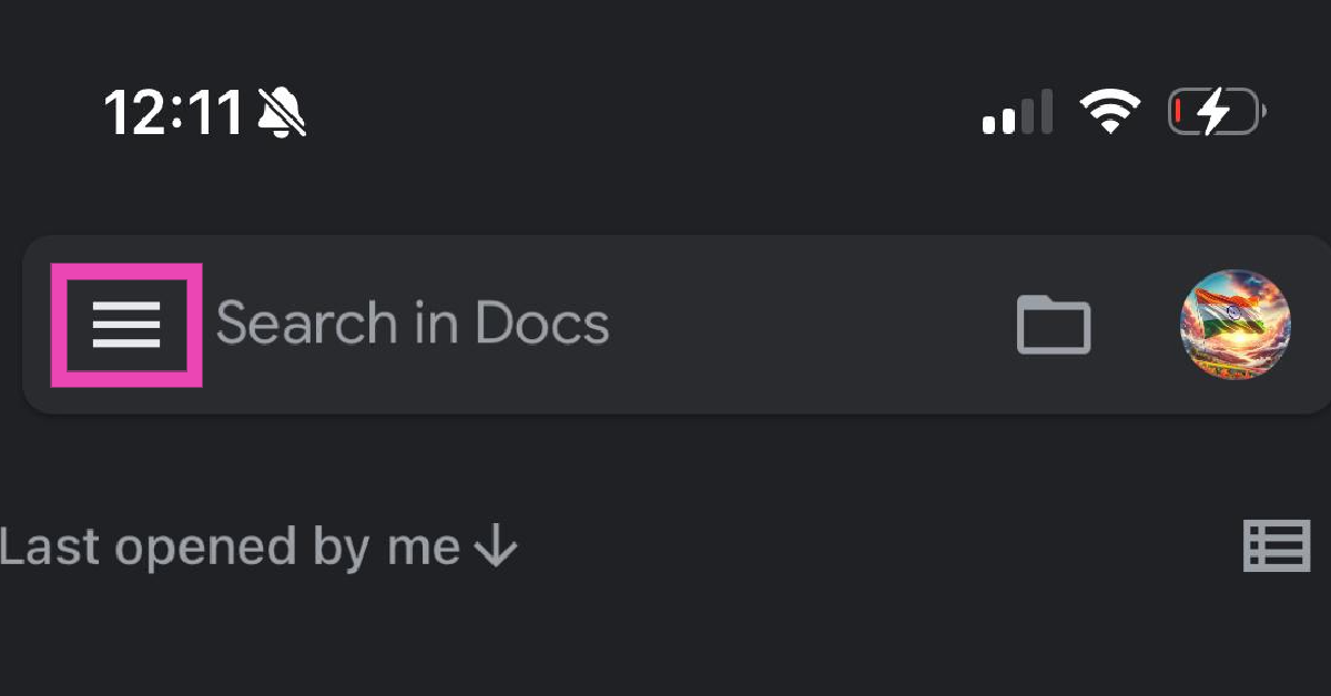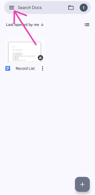 Trin 1: LanceringdeGoogle Docs apppå din iPhone og tryk påhamburger menui øverste venstre hjørne af skærmen.