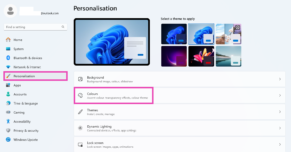 Trin 2:Skift tilFanen Tilpasningog vælgFarver.