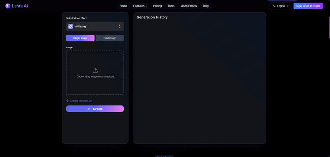 Lanta AI er en alsidig AI-videogenerator, der kan skabe realistiske kyssescener mellem to personer. Med avanceret ansigtsgenkendelse og bevægelsessporing sikrer det, at din video ser glat og naturlig ud.