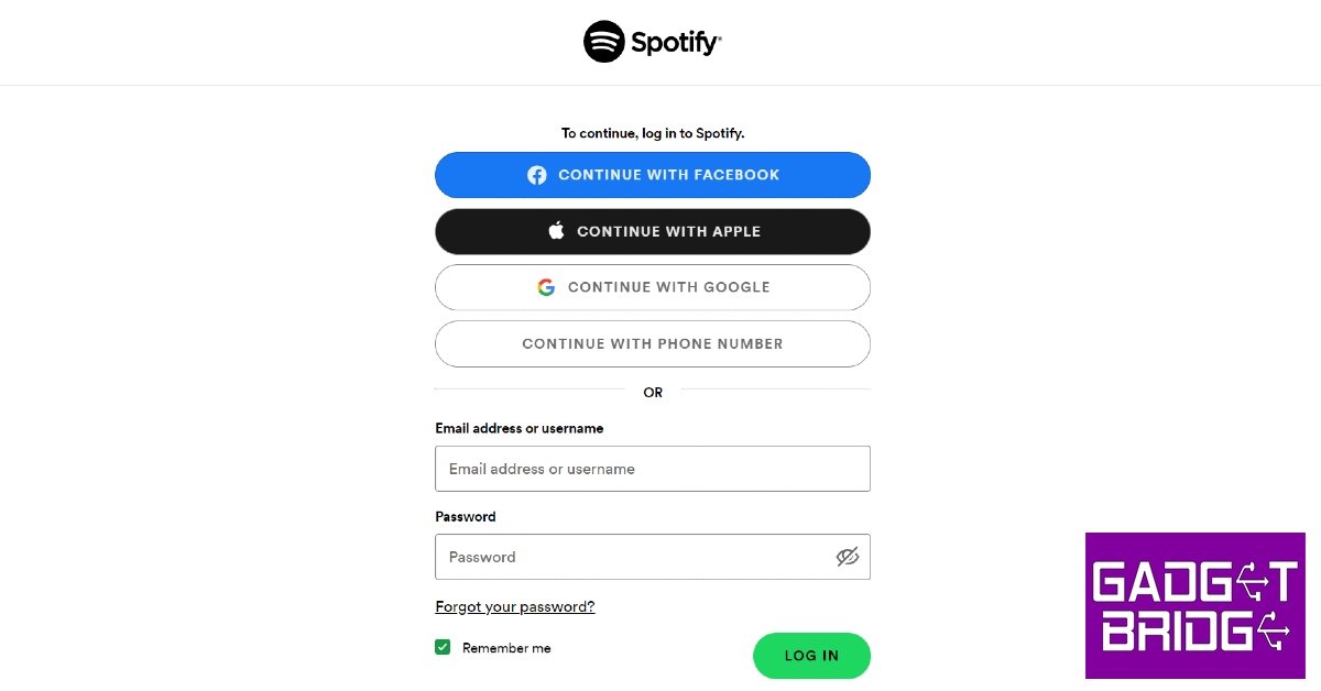 Trin 3:Log ind på din Spotify-konto. Hvis du ikke ved, hvilken e-mail du brugte til at tilmelde dig Spotify, skal du starte Spotifyog tryk på tandhjulsikonet. Din e-mail vil blive vist i sektionen Konto.