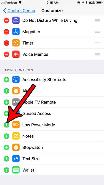 Trinnene i dette afsnit vil vise dig, hvordan du tilføjer en knap tilKontrolcentersom du kan trykke på for at slå lavenergitilstand til eller fra. Bemærk, at du skal bruge iOS 11 eller nyere på din iPhone for at have denne mulighed.