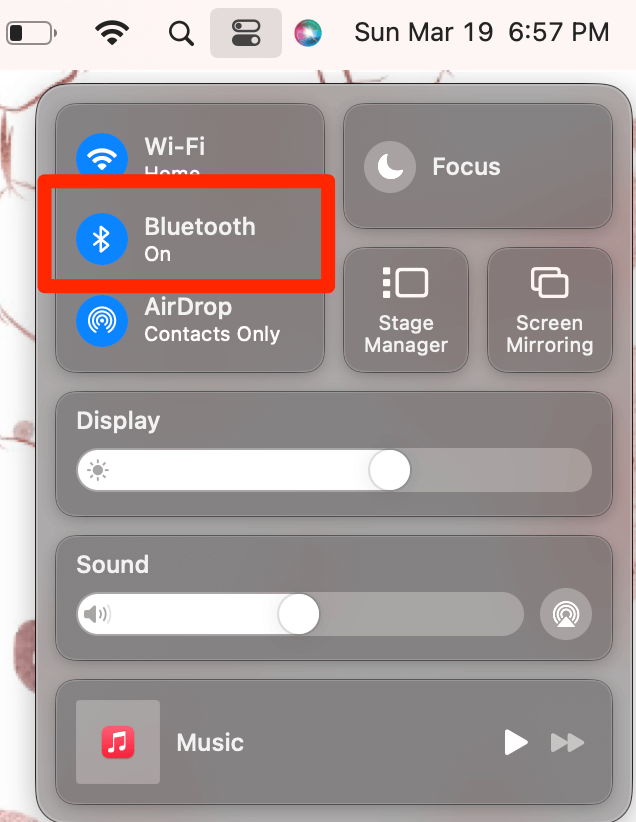 Klik på Bluetooth i kontrolcenteret