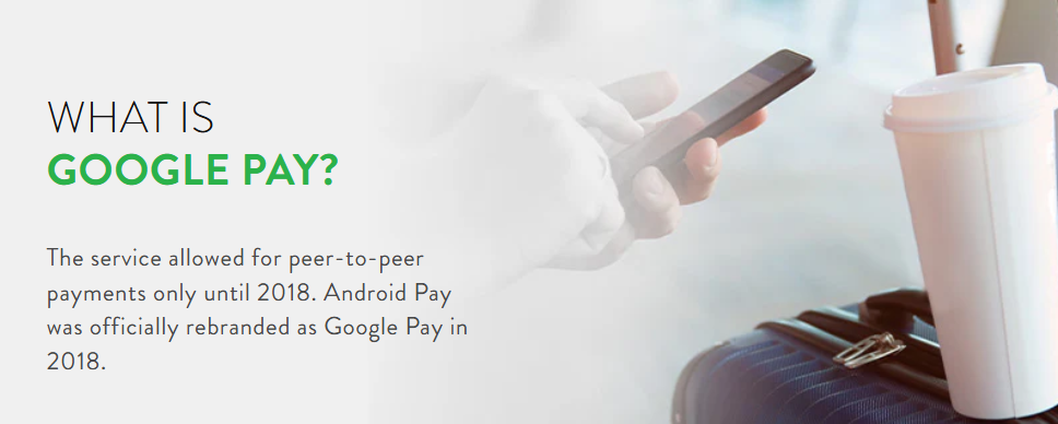 Google Pay is een online betalings- en digitale portemonnee-applicatie met een geschiedenis die teruggaat tot 2011. Het heette oorspronkelijk Google Wallet, maar veranderde de naam in Android Pay in 2015. De service maakte tot 2018 alleen peer-to-peer-betalingen mogelijk. Android Pay werd in 2018 officieel omgedoopt tot Google Pay.