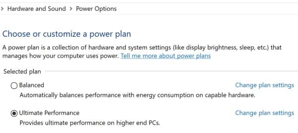 Volgens Microsoft zal Ultimate Performance de volgende wijzigingen in uw systeem aanbrengen: