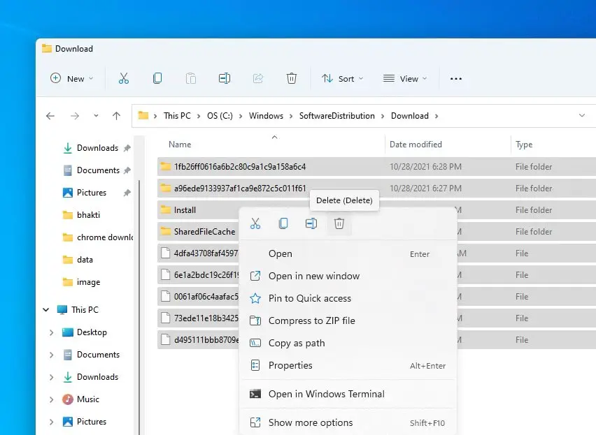 - Open nu Windows Verkenner en navigeer naar C:WindowsSoftwareDistributionDownload