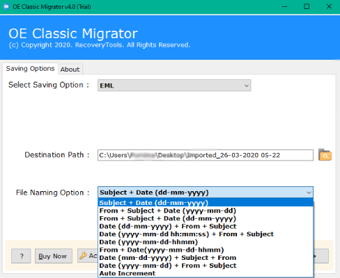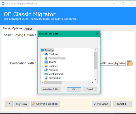 Gebruiksvriendelijk opslagpad:Met deze tool kunt u de back-up van OE Classic e-mails, adresboek en bijlagen op een gewenste bestemming opslaan.
