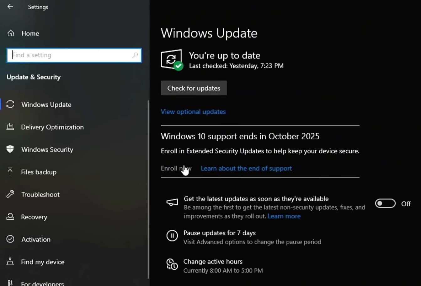 Iedereen met Windows 10 kan zich inschrijven voor deUitgebreide beveiligingsupdatesprogramma en blijf updates ontvangen tot en met 13 oktober 2026.