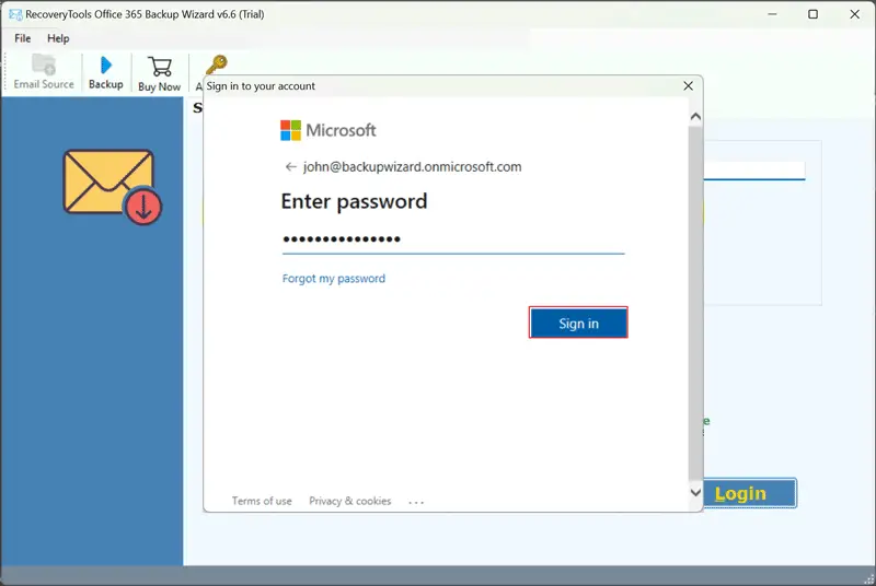 - Voer deM365-accountwachtwoord en klik op deInloggenknop.