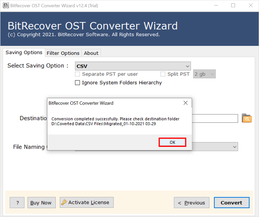 U kunt de gratis demoversie van deze software uitproberen voor evaluatiedoeleinden. Hiermee kunt u een paar OST-contacten uit elke map extraheren. Om de onbeperkte extractie uit te voeren, moet u de gelicentieerde versie van de software aanschaffen. Hoewel dit hulpprogramma een eenvoudig conversieproces heeft, kunt u, als u hier nog vragen over heeft, contact opnemen met ons technische ondersteuningsteam.