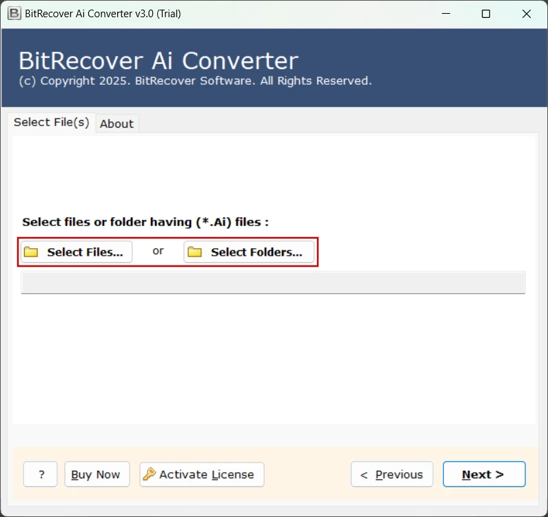 2. Ten tweede klikt u op SelecterenBestandenof SelecteerMapknop om in te voegenAI Bestanden.