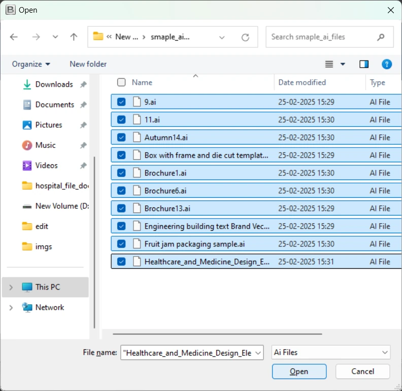 3. Ten derde,voorbeeldalle Illustrator-bestanden die nodig zijn voor de conversie.