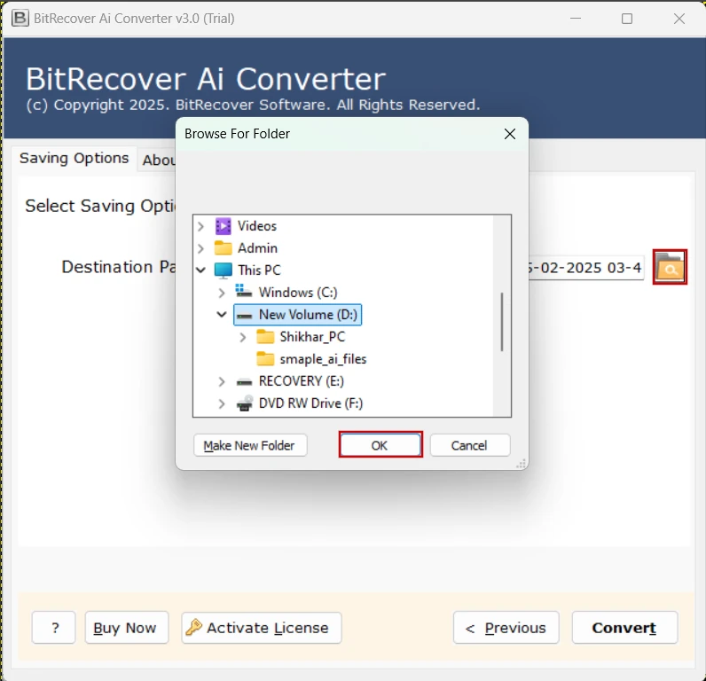 6. Selecteer daarna debestemming locatievoor de uitvoergeconverteerde bestanden.