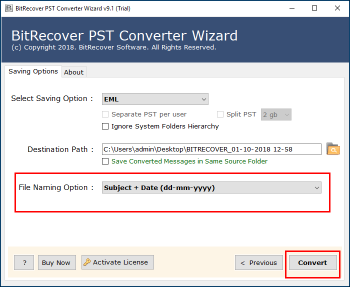 Wij raden u aan om dePST-convertertoolom deze conversie uit te voeren. Het is een alles-in-één oplossing die gebruikers de mogelijkheid biedt om PST-bestanden naar EML-formaat te converteren. DezeEML-bestandenkan eenvoudig worden geïmporteerd in OE Classic mail.