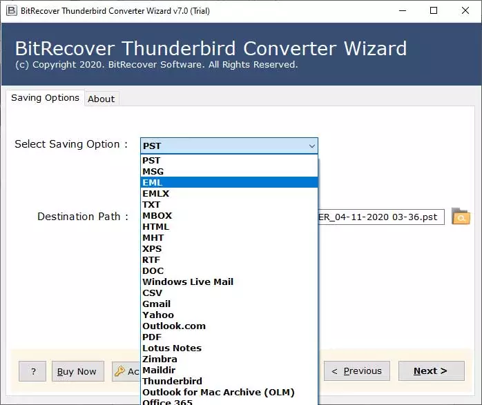 - Stap 4:Kies daarna EML als optie voor het opslaan van bestanden.
