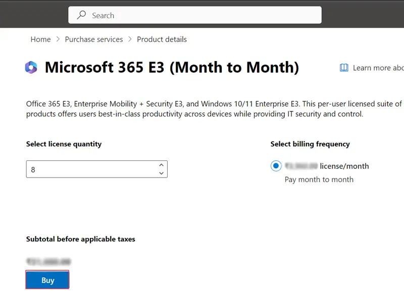 - Selecteer het licentieaantal, klik op deKopenknop en voltooi de transactie.