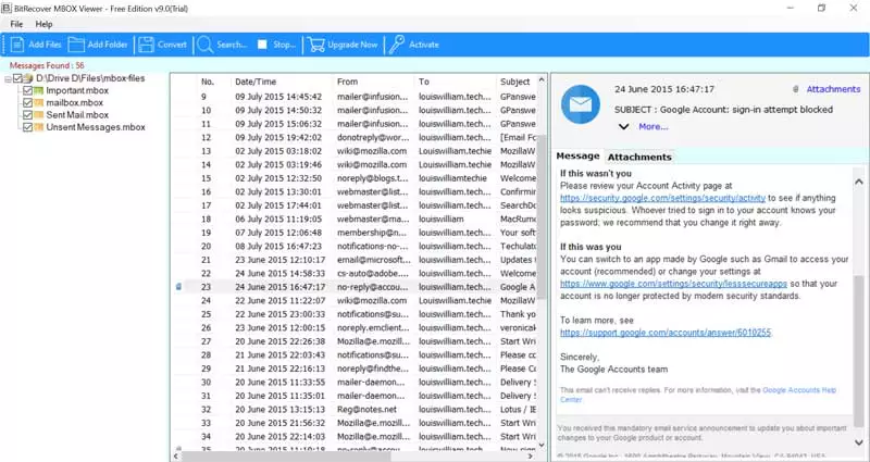 - Stap 4: Klik op de dgewenste Google Takeoutbestand om de gegevens in het e-mailbestand te bekijken.