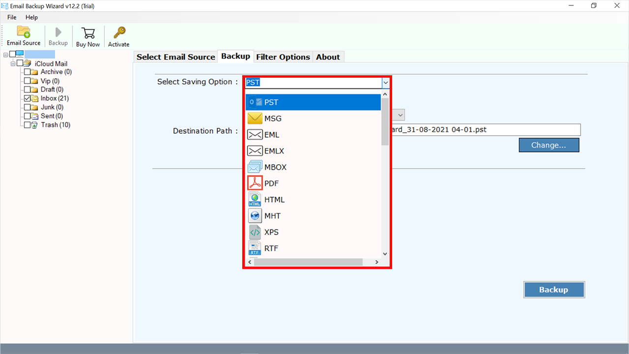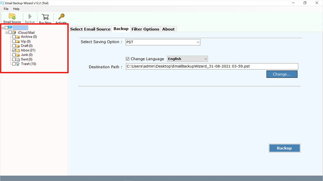 5. Eindelijk,blader door een bestemmingspaden klikBack-upom iCloud-e-mail offline te openen.