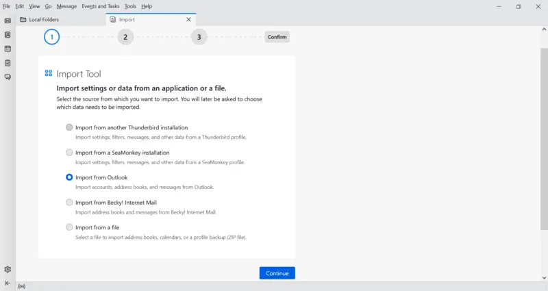 - Downloaden en uitvoerenThunderbird import OST-wizard.