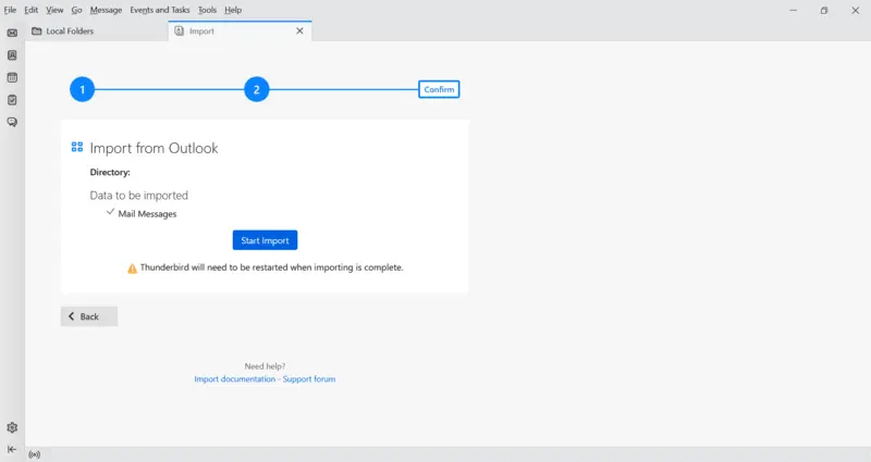 - Druk op deStart importerenknop om OST naar Thunderbird te importeren.