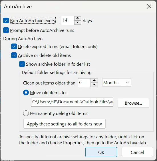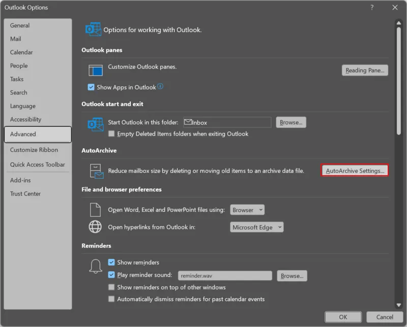 - KiezenGeavanceerd>>Instellingen voor automatisch archiveren.