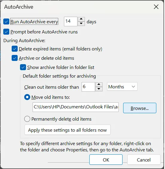 - InschakelenInstellingen voor automatisch archiverenen klikBlader.
