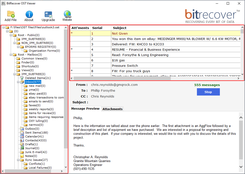 - Nu kunt u openenOST-bestand zonder Outlook, heeft u toegang tot de gegevens.