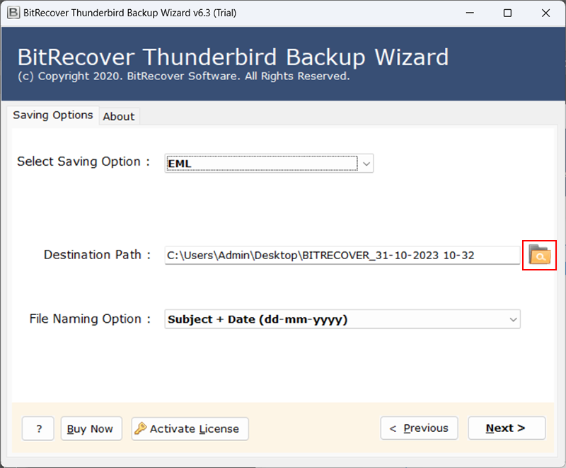 - Gebruikers kunnen de gewenste locatie kiezen om Thunderbird-bestanden rechtstreeks vanuit het softwarepaneel op te slaan.