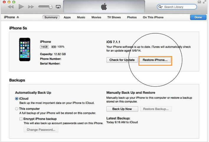 Als de gegevens op iTunes met uw iPhone worden gesynchroniseerd voordat u het wachtwoord bent vergeten en uw telefoon hebt vergrendeld, kunt u deze eenvoudige methode gebruiken om de gegevens te herstellen.