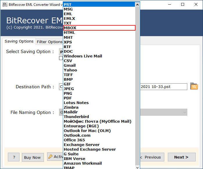 3. Daarna kan je datSelecteer een gewenste Mac-compatibel uitvoerformaat(zoals Mbox).
