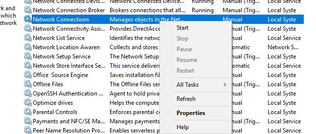 Druk op Windows-toets + R en typ vervolgensservices.mscen druk op Enter. Zoek hier op de Windows-serviceconsole naar de onderstaande services, controleer en zorg ervoor dat ze actief zijn. Als dit niet het geval is, klikt u met de rechtermuisknop op elke service en selecteert u Start.