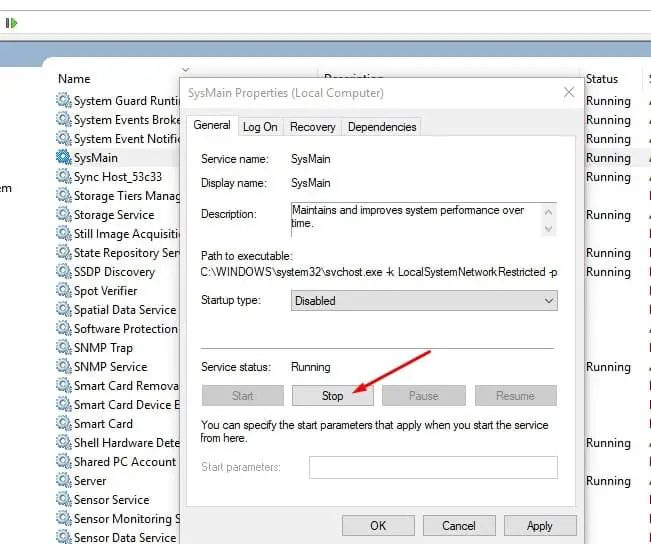 - Wijzig het opstarttype om uit te schakelen en stop de service.